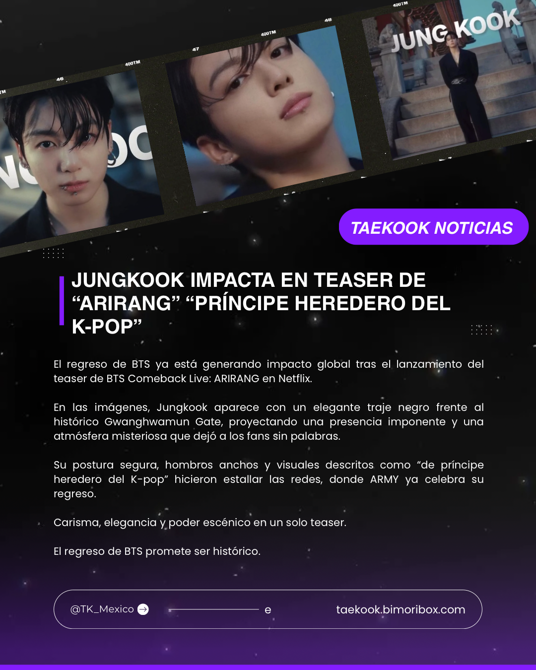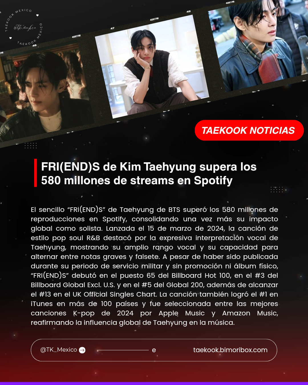 Bienvenidos a la pagina de TaeKook Mexico, en donde encontraras información oficial de Kim Taehyung y Jeon Jung Kook, esta pagina web esta avalada por la fanbase global @TheTKGlobal y sus sub fanbases.